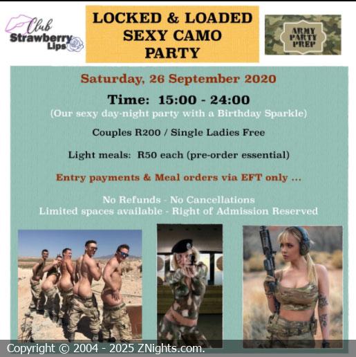 We are on the frontline, so its boots on the floor, balls to the walls, and into the trenches we will be for this provocative bootylicious party. Ensure your army fatigues are revealing, saucy, and very risque. Let me hear it… HUAH!!