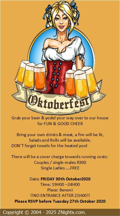Exclusive Private Parties held in Morehill Glen, Benoni. RSVP WhatsApp only to 082 929 0266