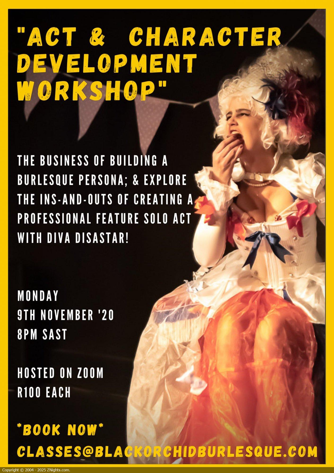 Tonight on Zoom, I bring you my virtual ACT & CHARACTER DEVELOPMENT WORKSHOP at 8pm SAST!