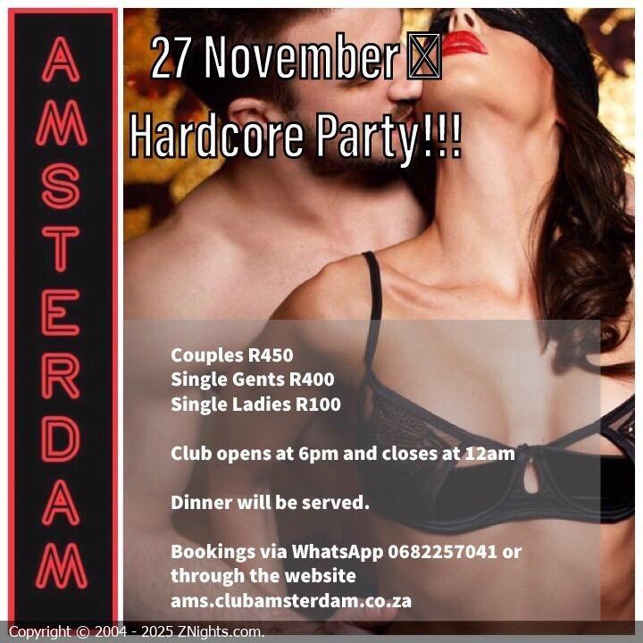 Hi Amsterdamers 🌺🌹. We have a double treat for you this week; a HARDCORE PARTY on Friday and our ANGELS AND DEMONS PARTY on Saturday 💃🕺🏼🔥😈. Attend both parties and receive R100 off the entry fee.💋💋Please note the following: - Covid-19 precautions will be in place. Please bring your masks😷. - The parties will commence at 6pm and end at 12am. Book via WhatsApp on 068 225 7041, Love Dee & Benton
