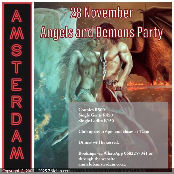 Hi Amsterdamers 🌺🌹. We have a double treat for you this week; a HARDCORE PARTY on Friday and our ANGELS AND DEMONS PARTY on Saturday 💃🕺🏼🔥😈. Attend both parties and receive R100 off the entry fee.💋💋Please note the following: - Covid-19 precautions will be in place. Please bring your masks😷. - The parties will commence at 6pm and end at 12am. Book via WhatsApp on 068 225 7041, Love Dee & Benton