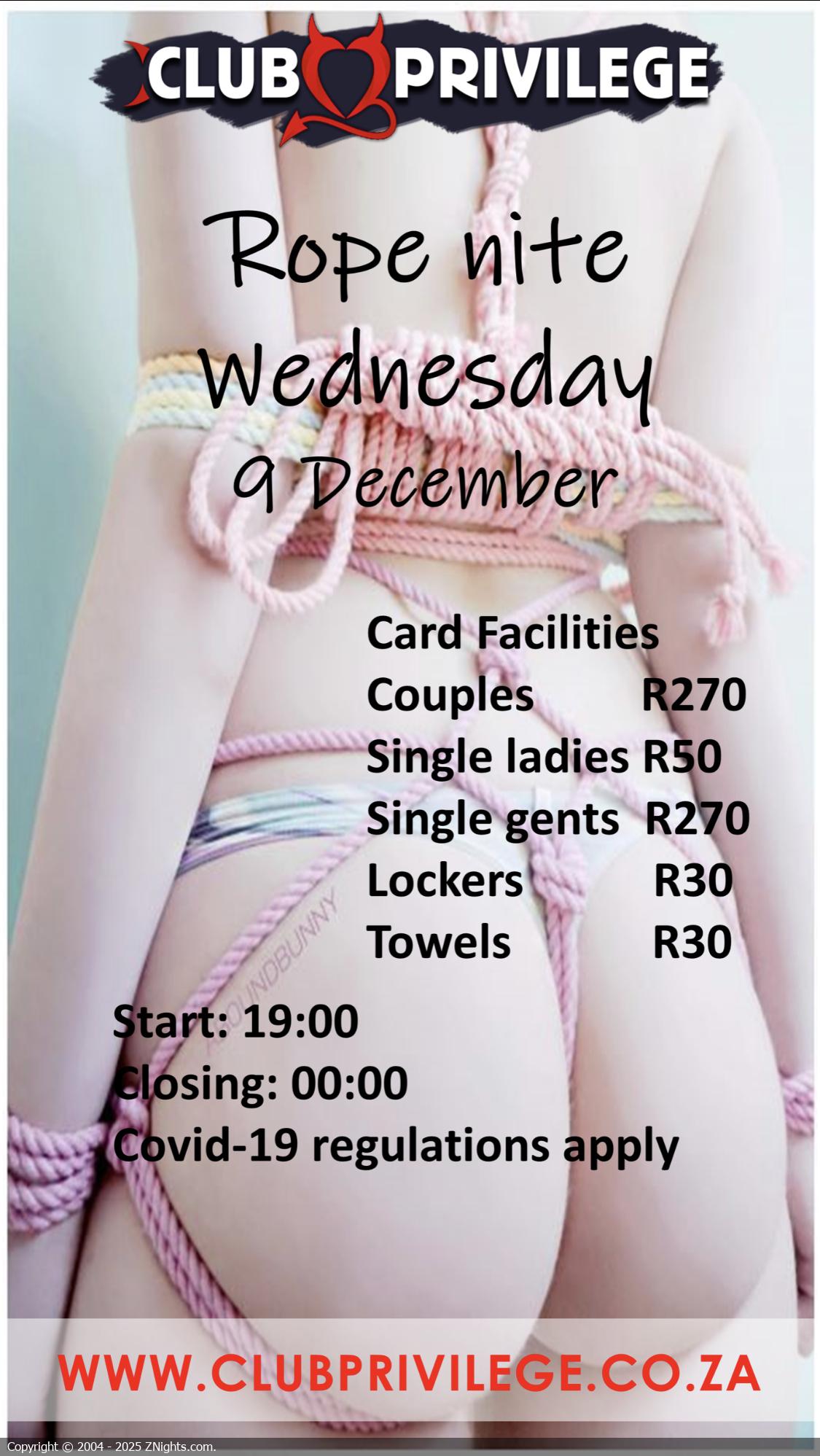 Wednesday is our Fantasy night. We will be having a Rope night!