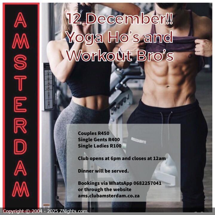 Hi Amsterdamers 🌺🌹. Join us this Saturday for our first ever Yoga Ho’s and Workout Bro’s party. 🏋️🧘♀️ We would love to see you in your sexy training gear 😊 or just dress super sexy. DJ Luscious M will be back in the house rocking the decks 🎧👩🎤🎵. Please note the following: - Covid-19 precautions will be in place. Please bring your masks😷. - The parties will commence at 6pm and end at 12am. Book via WhatsApp on 068 225 7041, Love Dee & Benton 💋💋