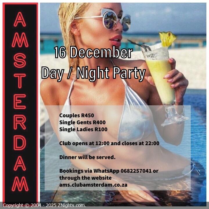 Hi Amsterdamers 🌺🌹. Join us this Wednesday for our biggest Day/Night party of the year. Come relax around the pool in your sexy swimwear. DJ Luscious M will be rocking the decks outside the pool.🎧👩🎤🎵. A light meal will be served. Please note the following: - Covid-19 precautions will be in place. Please bring your masks😷. - The parties will commence at 12:00 and end at 22:00. Book via WhatsApp on 068 225 7041, Love Dee & Benton 💋💋