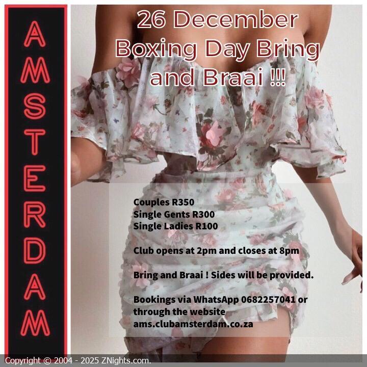 Hi Amsterdamers 🌺🌹. Join us this Saturday afternoon for a relaxing Bring & Braai around our beautiful pool. Just bring your protein 🥩and we will provide the sides 🥗. Please note the following: - Covid-19 precautions will be in place. Please bring your masks😷. - The club will open at 2pm and close at 8pm. Book via WhatsApp on 068 225 7041, Love Dee & Benton 💋💋