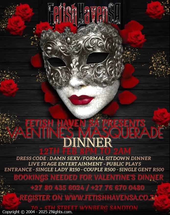 Dress up to impress. Grab your seat at the dinner table with your sub/slave at your feet. Serving time means your sub/slave gets to Serve you.. Live plays is what we have lined up. It's more than just your rope, Caning and Flogging. It's more than just Serving.. Let us make this Kinky Valentine's an affair of fetish/food/limits/and every kink out there. Absolutely lgbtq. Crossdressers, dress up and impress. Fancy Masks a must.