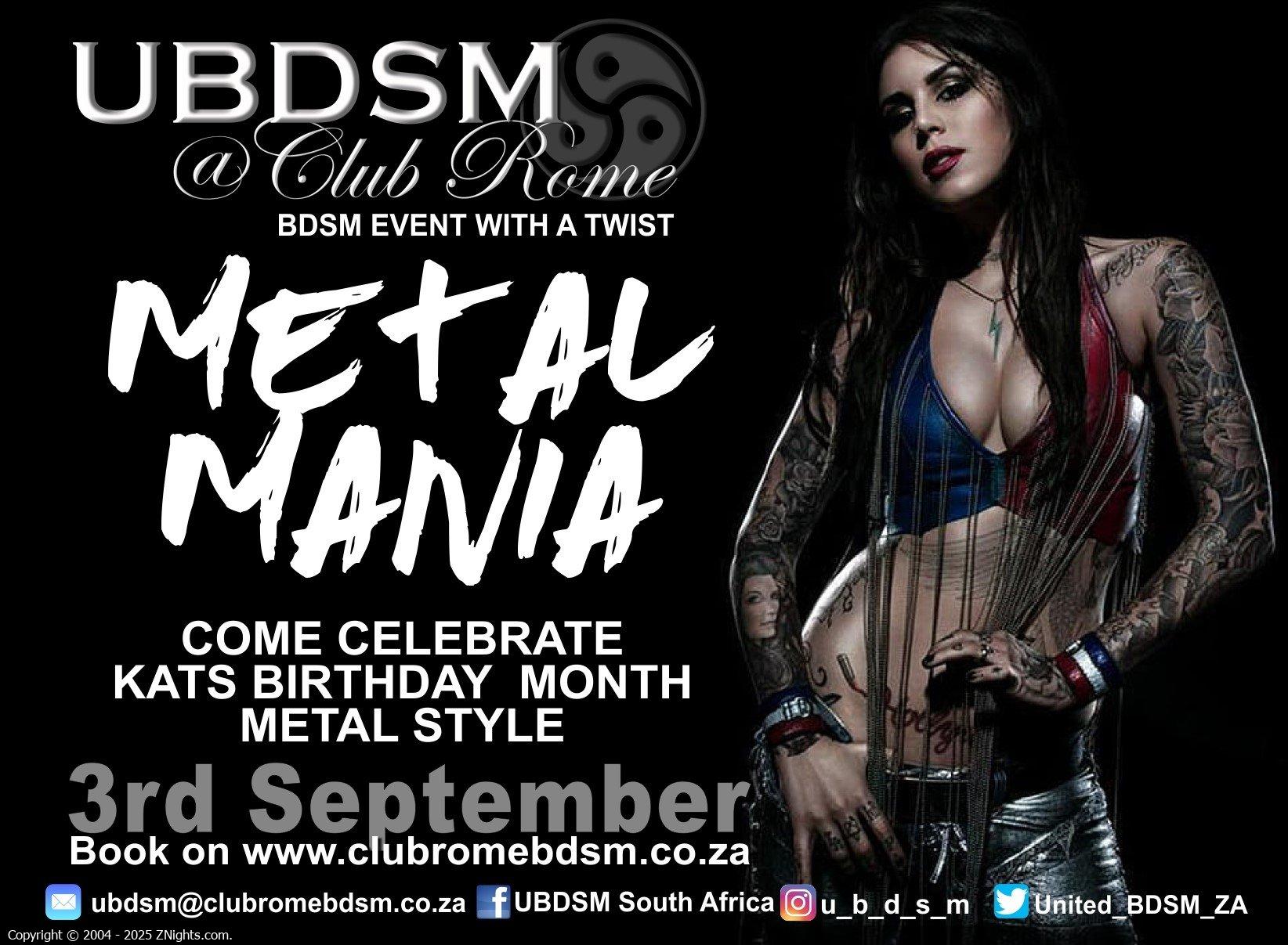 UBDSM at Club Rome- BDSM Event with a Twist! Metal Mania on 3rd September