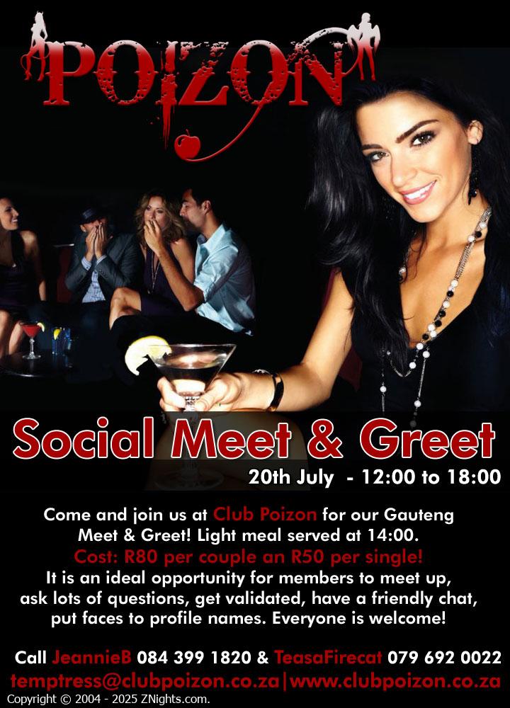 Come and join us at Club Poizon for our Gauteng Meet & Greet! It is an ideal opportunity for new and old members to meet up, ask lots of questions, get validated, have a friendly chat, put faces to profile names. Everyone is welcome! Get Validated and receive 14 days full subscriber access to ZNights.