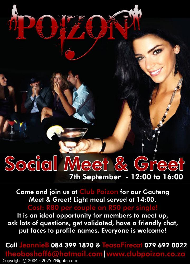 Come and join us at Club Poizon for our Gauteng Meet & Greet! It is an ideal opportunity for new and old members to meet up, ask lots of questions, get validated, have a friendly chat, put faces to profile names. Everyone is welcome! Get Validated and receive 14 days full subscriber access to ZNights.