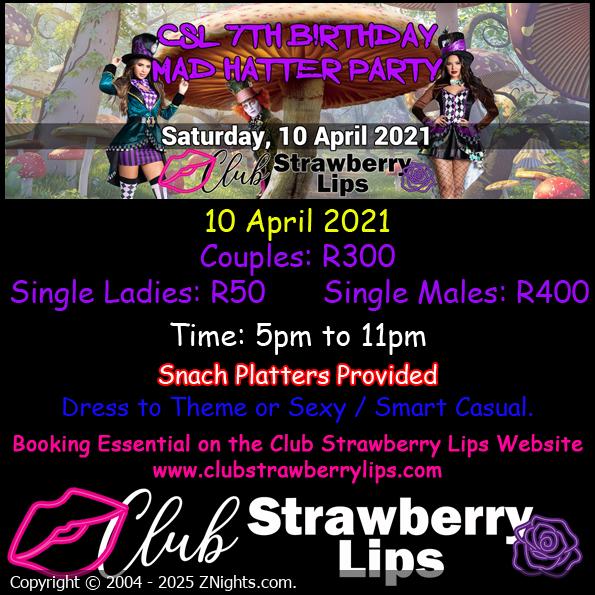 This coming Saturday the 10th of April 2021 Club Strawberry Lips is hosting their Mad Hatter 7th Birthday Celebration and would love to see you all there partying the night away with us.