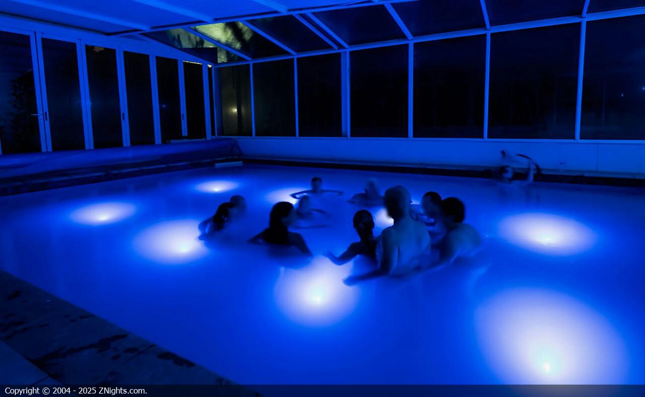 Water Flow takes place in an indoor heated pool, the water is 37’. The lights are low, there is music playing that helps you relax.