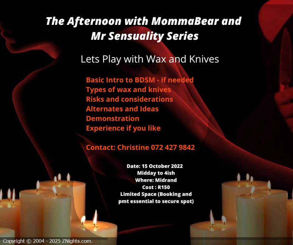 Come learn the basics of bdsm, and wax and knife play