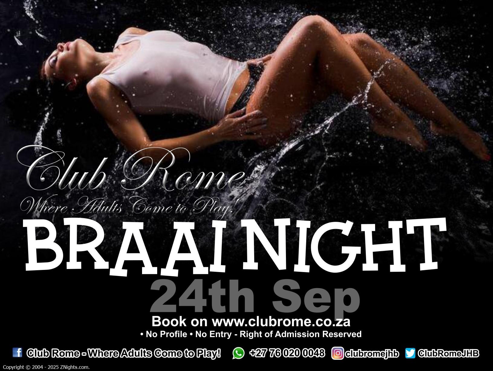 Braai Night. Let's ditch the chicken for one night and throw a few lamb tjops on the braai, no need to bring anything just your sexy self we will supply and braai the meat.
