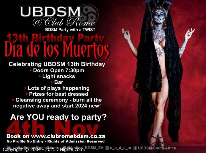 UBDSM at Club Rome - Calling all Voodoo Kings & Queens, Creatures of the night. The Veil is thin between the two worlds LETS PARTY!! and lets celebrate UBDSM 13th Birthday Dia de los Muertos style! Prizes up for grabs for Best Dressed and more...