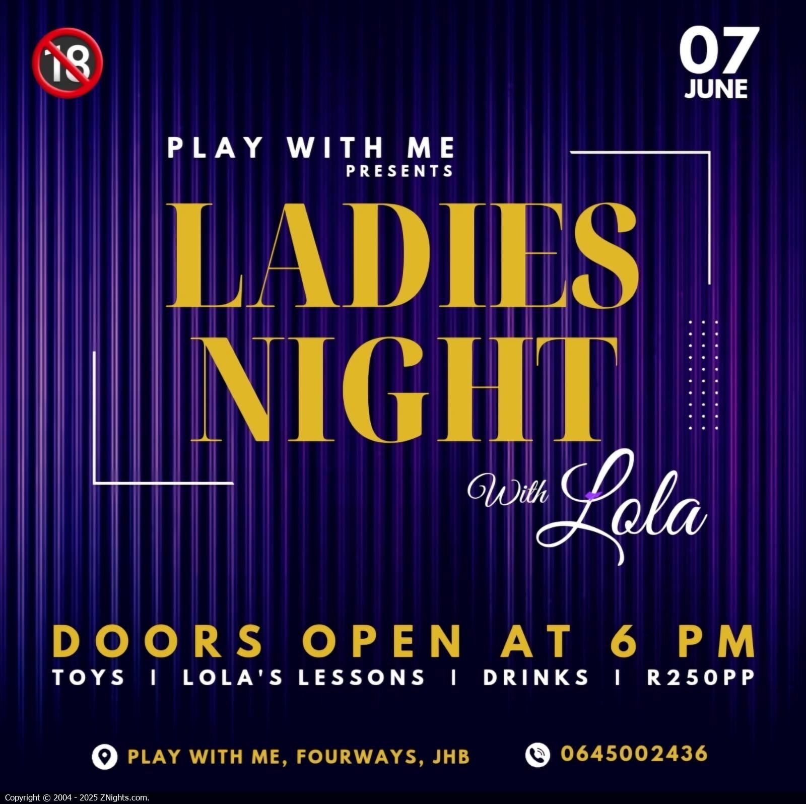 Ladies, get ready for an unforgettable evening of connection, laughter, empowerment & sex-education! Join us for "Ladies Night with Lola," - an exclusive event hosted by Lola Blakely Productions in association with Play With Me.