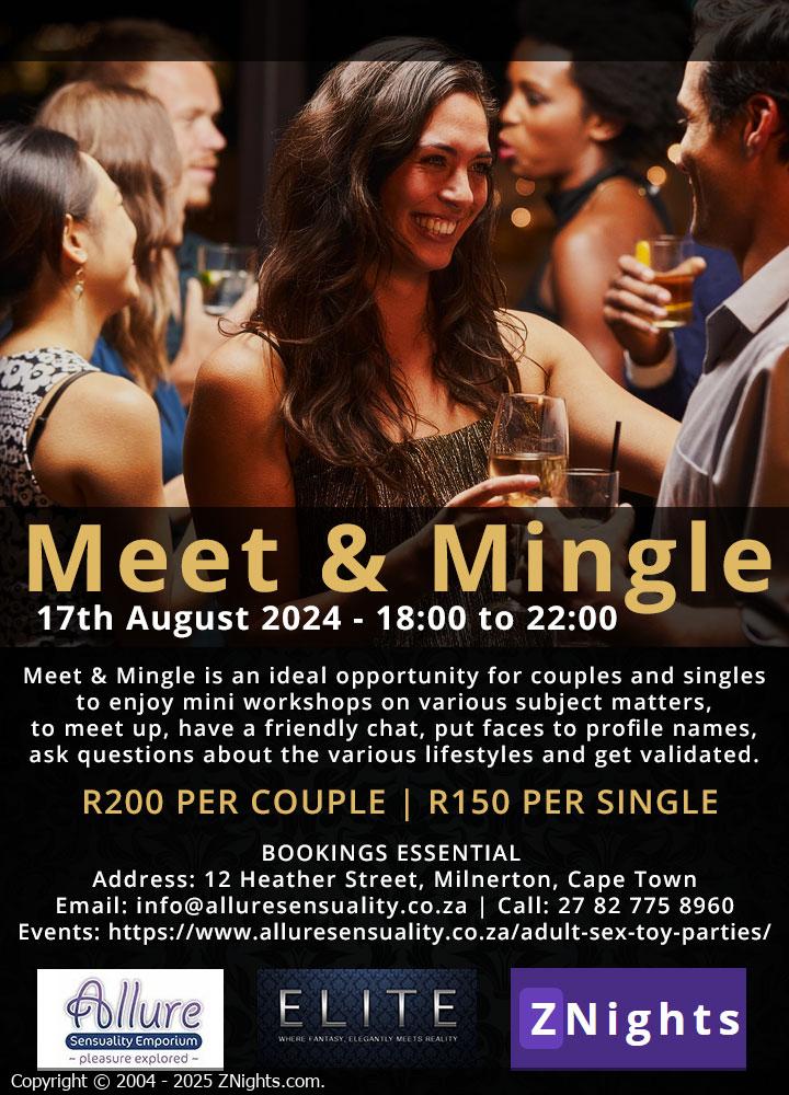 You are invited to our ZNights social Meet & Mingle, hosted by Sari from Allure Sensuality Emporium and our ambassador MRANDMRSM2 from ELITE Events. It is an ideal opportunity for couples and singles to enjoy mini workshops on various subject matters, to meet up, have a friendly chat, put faces to profile names, ask questions about the various lifestyles and get validated ZNights will also give 14 days subscription to those who have been validated by the hosts