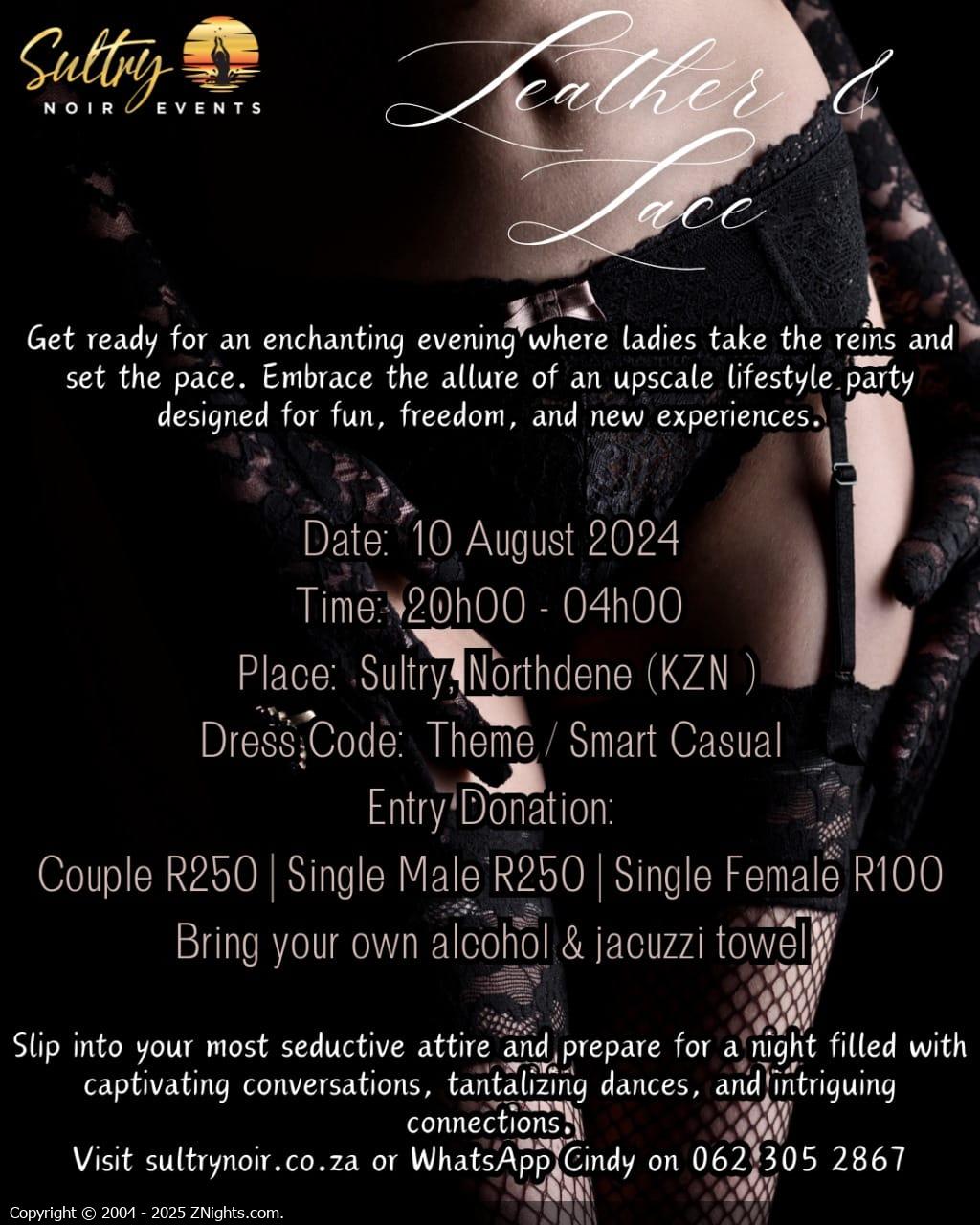Hope you all had an awesome weekend. This weekend Sultry will be hosting a Leather and Lace party & we hope to see you all there.