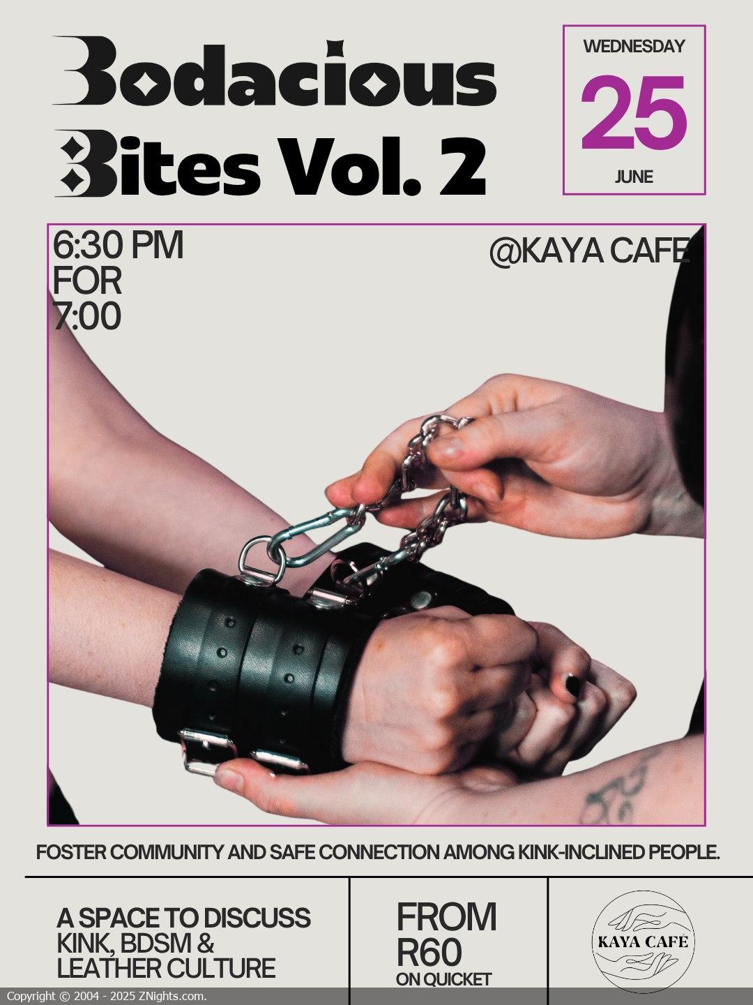 Our Bodacious Bites event is a new take on a well known kink community get-together called "Munches" where like-minded people can come have casual, easy conversations about their experiences and hopes on their kinky journey ⛓️