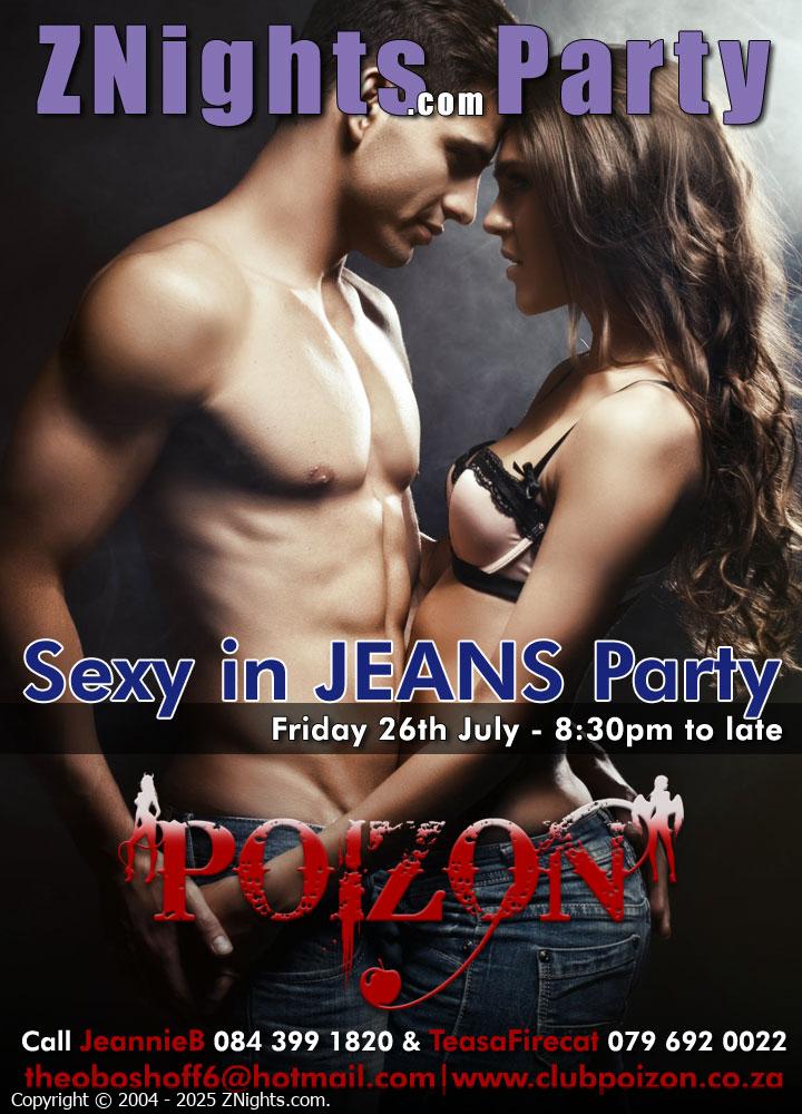 Sexy in Jeans is a ZNights and Club Poizon networking initiative. When we say everyone is welcome, we mean it! So, no matter your website or club affiliation come and join us for a sexy fun evening of partying with like minded people! Added, if you bring a couple, only pay R200.00 per couple to party! Don't forget to RSVP to JeannieB 084 399 1820 to receive your discount!